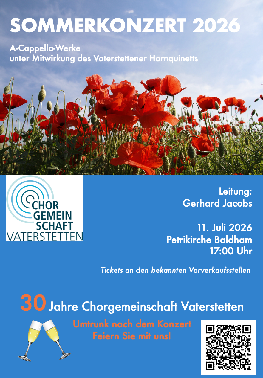 Wir feiern 30 Jahre Chorgemeinschaft Vaterstetten mit 3 Konzerten in 2026